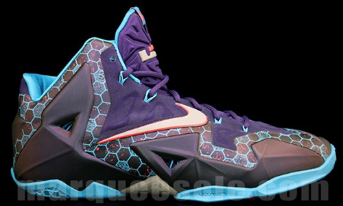 这款 LeBron 11 Hornets 应用了黄蜂队的紫色打造鞋身,搭配伽马蓝内衬和 XDR 大底,而鞋面上蜂窝状纹路点缀效果十分抢眼。 货号:626374-500