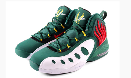 Nike Sonic Flight 将Nike Air Zoom GP与Nike Air Zoom Flight 98的细节融合在鞋身设计中打造而成,绿色鞋身搭配白色大底,红色猴爪、黄色动态飞线等细节点缀鞋面之上,鞋舌上则印有标志性的Fli