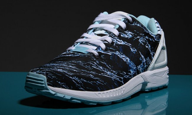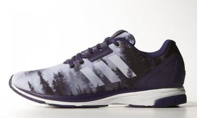 adidas ZX Flux Tech 再次呈现一款图案鞋面鞋款。以迷雾森林的画面呈现,深蓝主色调点缀白色细节,神秘的时尚感受十足。