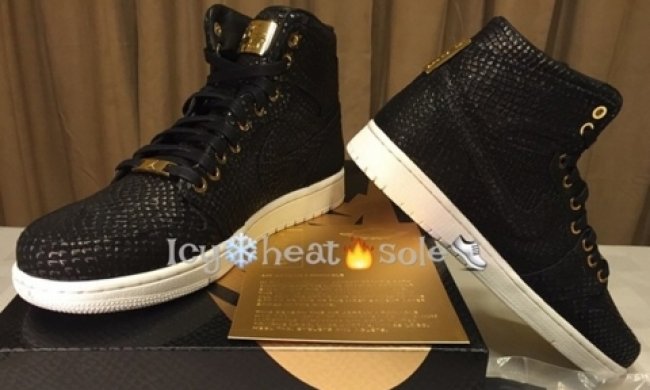 之前传言 Air Jordan 1 巅峰系列将于 2015 年全明星周末期间亮相,跳票之后再次曝光实物图片。 采用优质的珍珠鱼皮材质打造鞋面,金黄色的细节装饰据称采用 24K 纯金打造,而之前曝光