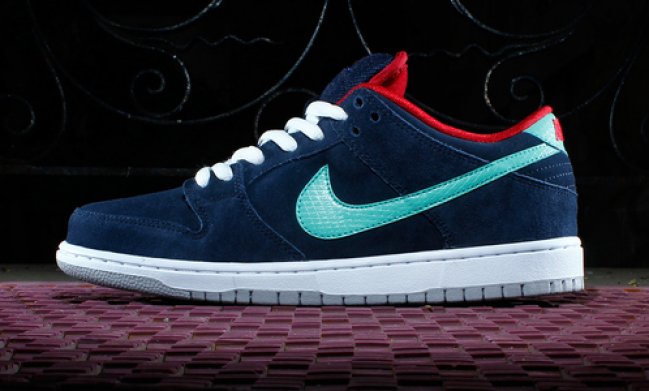 全新配色Nike SB Dunk Low Pro登场,黑曜石色麂皮鞋身搭配运动红色内衬,swoosh以及后跟选用薄荷色蛇纹装饰,再配以白色鞋带/中底以及灰色大底。此款现已发售。