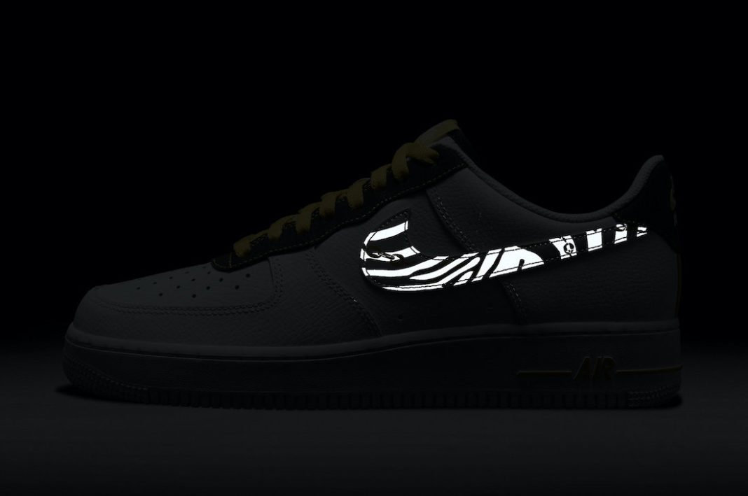 侧身 Swoosh Logo 以斑马纹以及金色链条妆点,并暗含 3M 反光细节。
