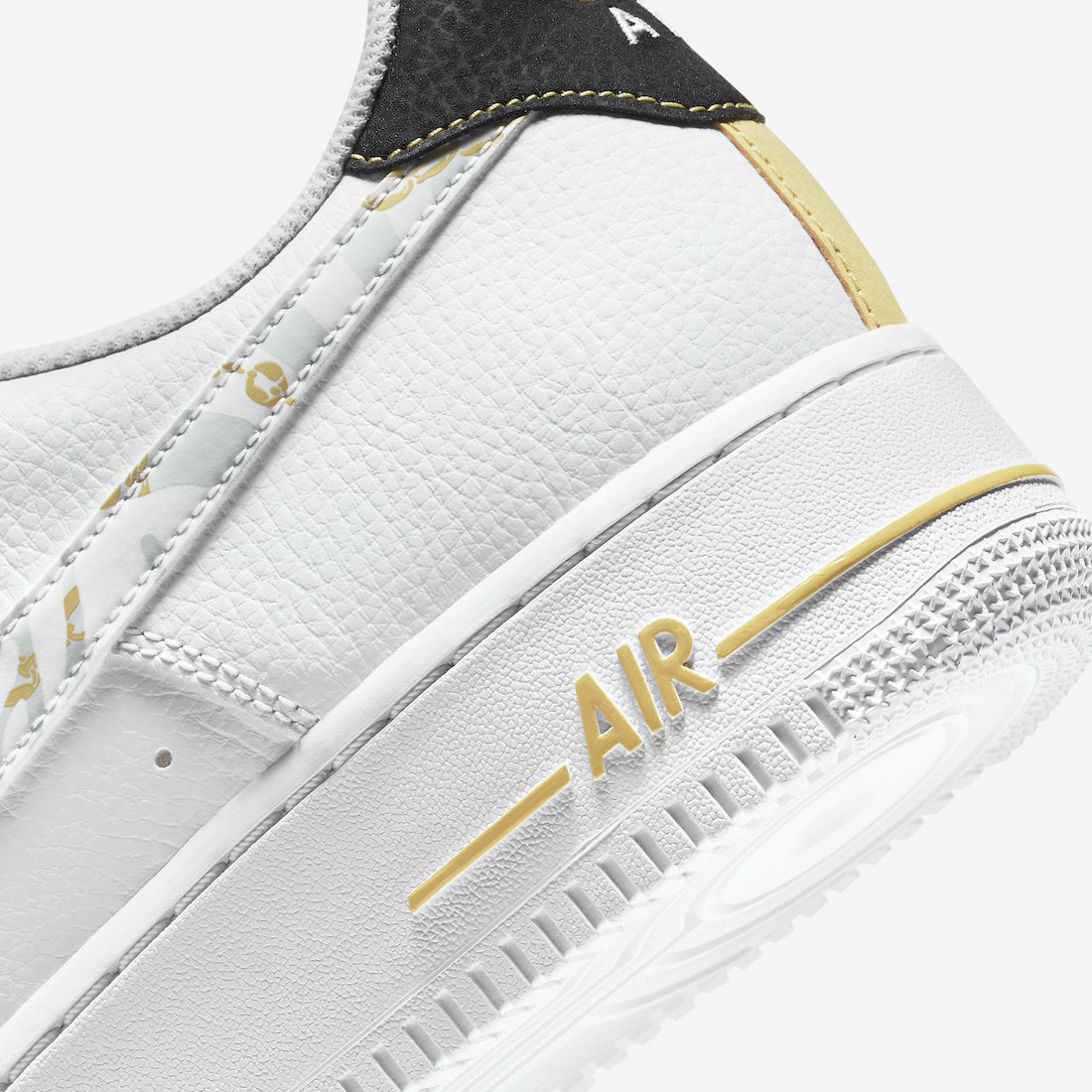 整双鞋以白色为主调,同时注入金、黑双色点缀细节。